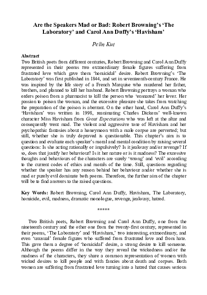 Pdf Are The Speakers Mad Or Bad Browning S The Laboratory And Duffy S Havisham Pelin Kut Belenli Academia Edu
